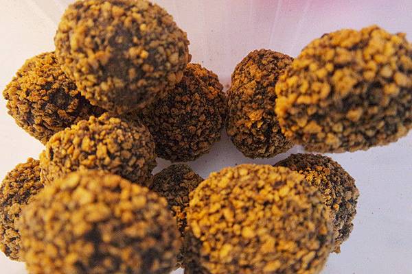 外皮非常的酥脆且不油膩,外殼包裏著濃郁不甜膩的獨家巧克力醬
