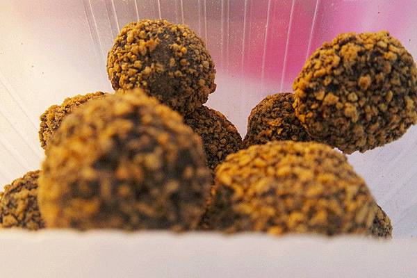 每一粒都有一定的大小,外型是球體狀,白巧珍珠吃起來感覺帶點巧克力的香甜味