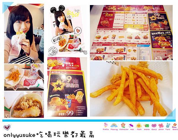 ♡99群星餐除了搭配的主餐點外,旁邊還有用竹籃裝食的附餐,裡面有超大塊的金黃脆腿條和脆薯,真的是小資族的新選擇,讓人覺得物超所值