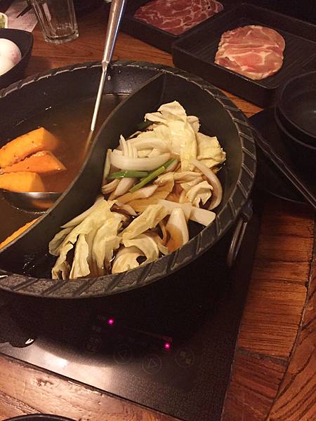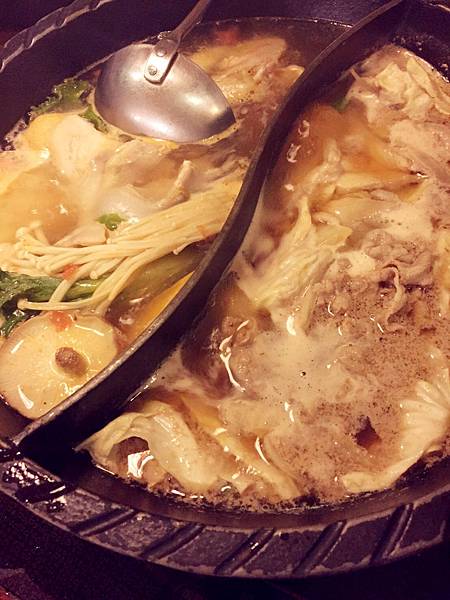 我們點的這鍋是鴛鴦壽喜鍋,另一半的口味是蕃茄鮮蔬的口味