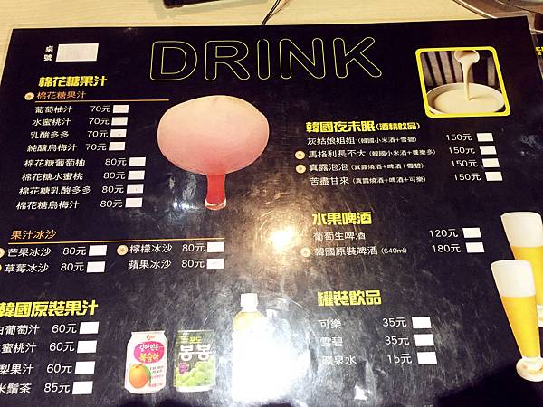 飲品類的部份也很多樣化,有果汁也有酒品類,當然還有最可愛的棉花糖果汁飲系列