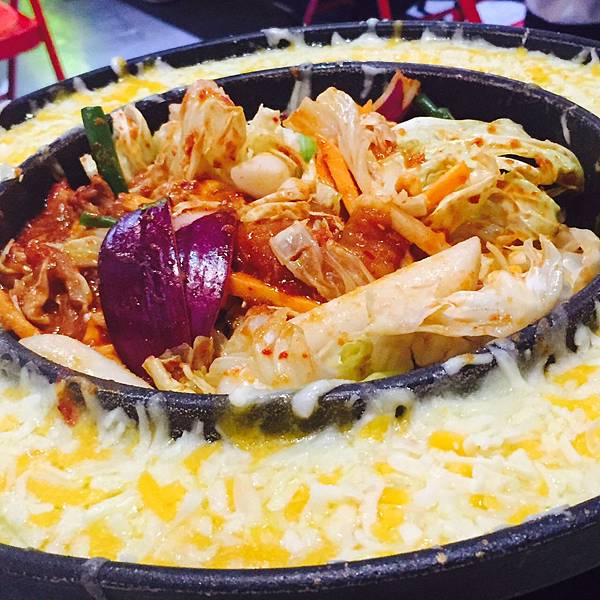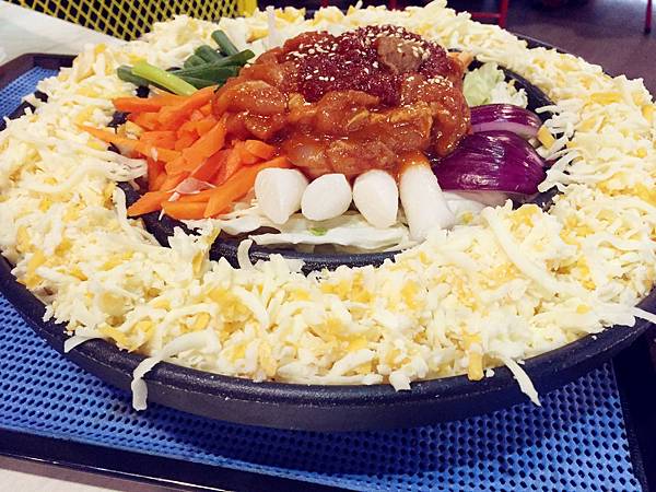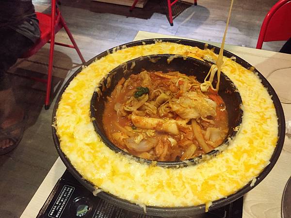 今天所品嚐的是李光洙起司擂台炒雞雙人鍋,外圈是滿滿的起司圍繞著,真的很滿,滿到都很怕它掉出來XD![]()