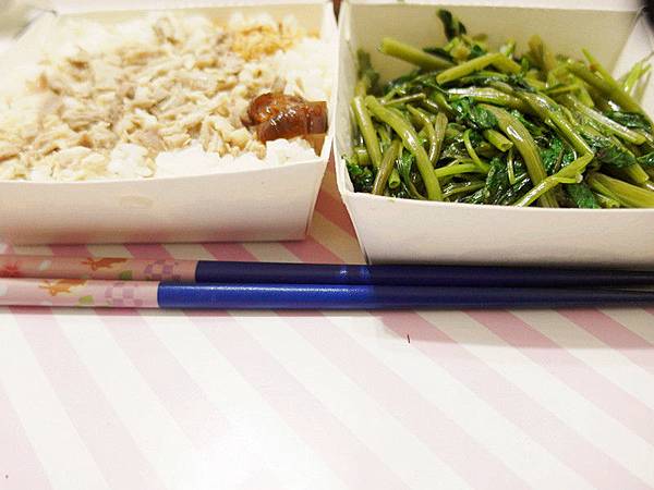 吃完後30分鐘,就可以開始放心的大享受午餐了,我選的是高熱量的雞肉飯,但還搭配了青菜,讓營養更均衡點