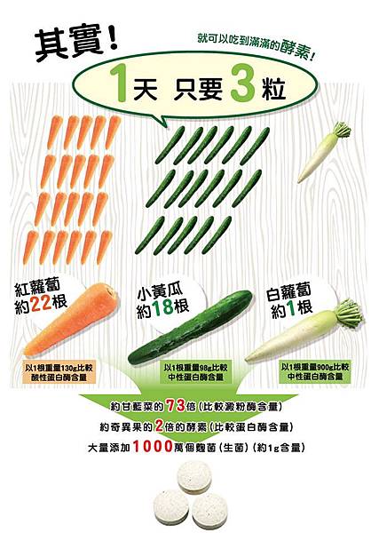 像是有大約22根的紅蘿蔔以及18根小黃瓜跟1根白蘿蔔,超驚人的酵素力量,跟其它酵素更不一樣的地方是麴酵素的原料部份,是使用了7種穀物,可以讓酵素發揮最大力量,如此天然又有力,所以多吃也不會有負擔的唷!