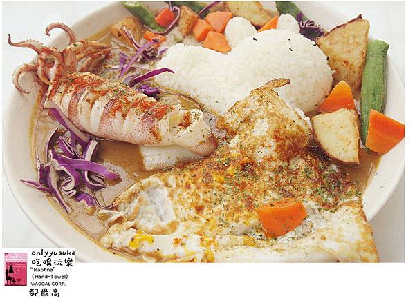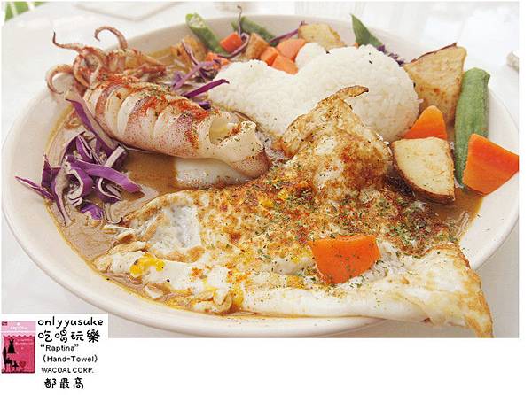 老媽點的是咖哩系列的鹽烤海鮮,咖哩的味道濃厚好吃,旁邊還有感覺就很健康的蔬食配菜